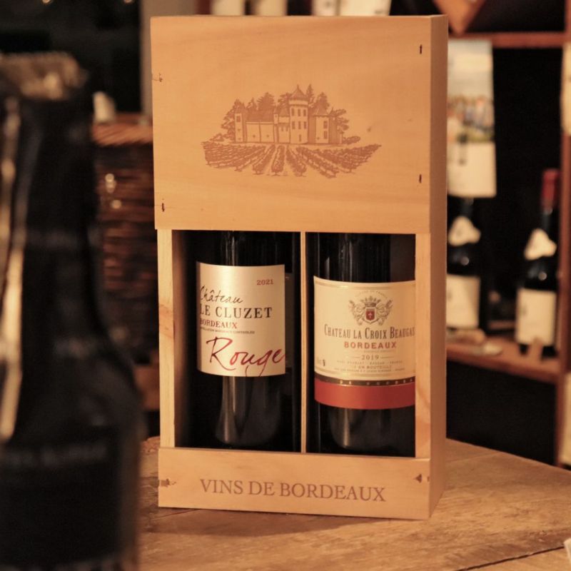 2 Flaschen edle Rotweine aus dem berühmten Anbaugebiet Bordeaux, gehaltvoll und trocken.